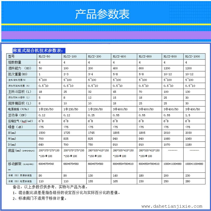 RLCZ 系列称重式混料机应用于:塑料射出、压出或中空成型制程上需要多种原料按重量比例做精确混合的场合使用(适用于新料、次料、色母或添加剂多种原料自动比例混合)。
